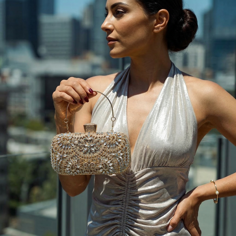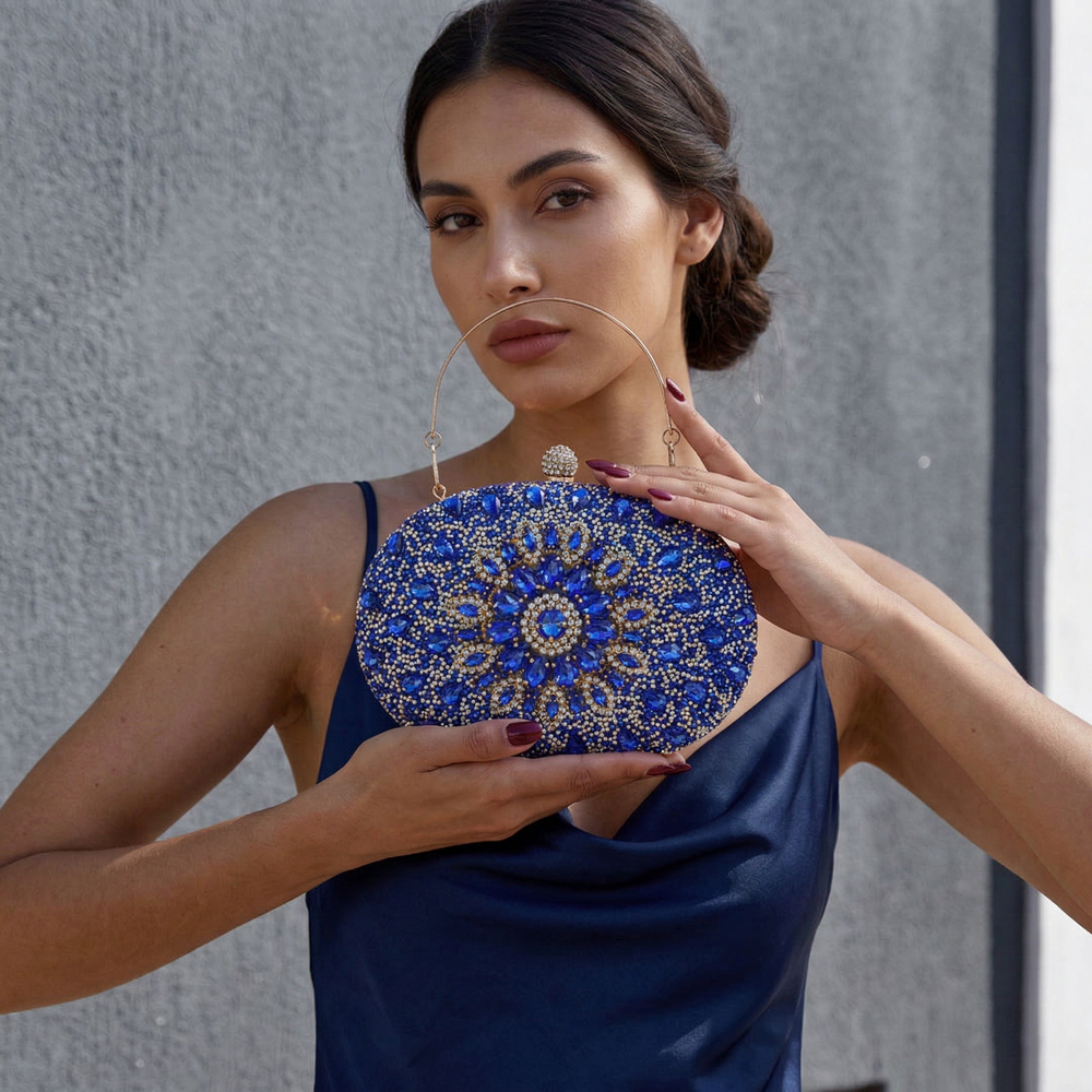 Luxe Bloom – Crystal Top Handle Clutch Purse
