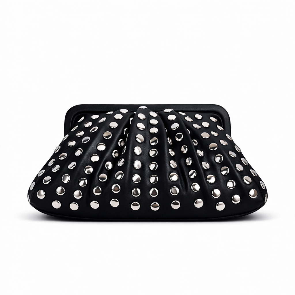 Roux – Studded Vegan Leather Ruched Clutch Bag with Frame Closure