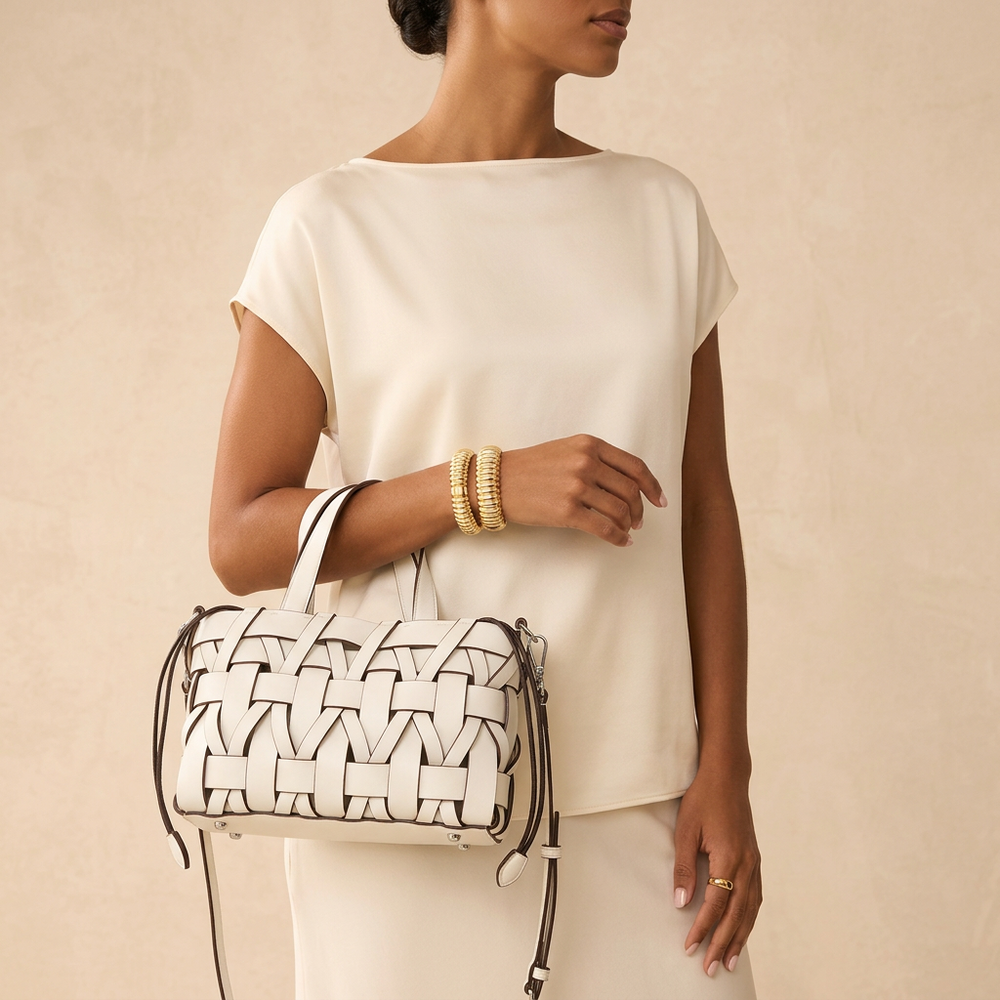 Calla – Woven Vegan Leather Shoulder Bag, Top Handle