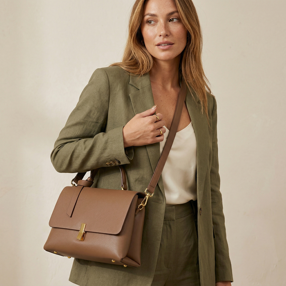 Lena – Structured Top Handle Bag, Crossbody Strap