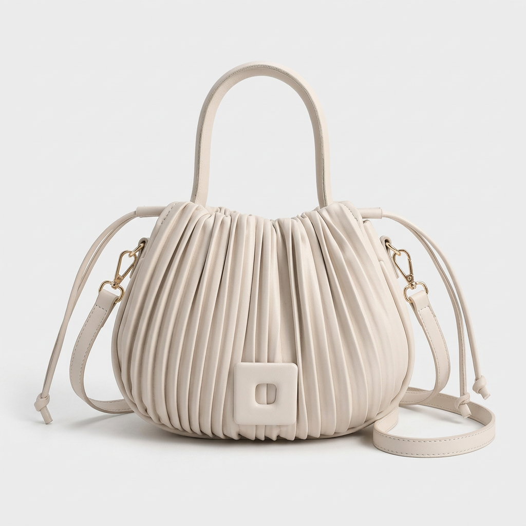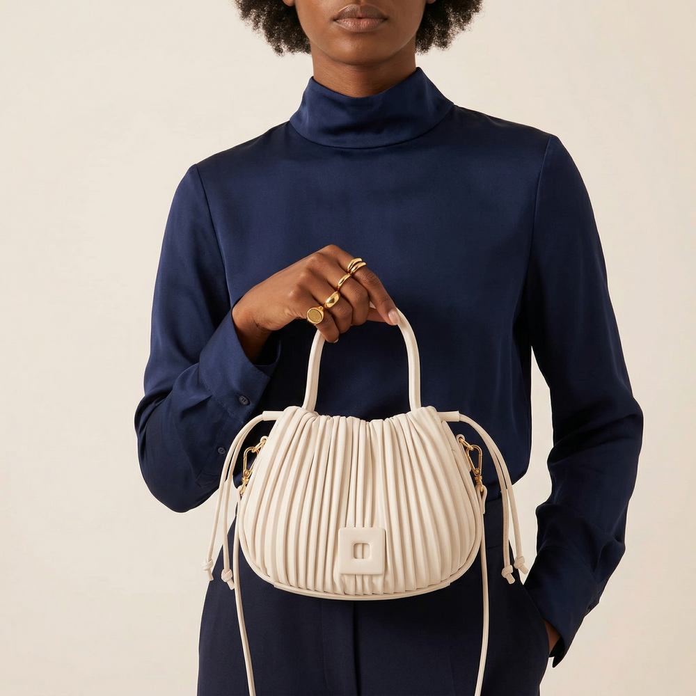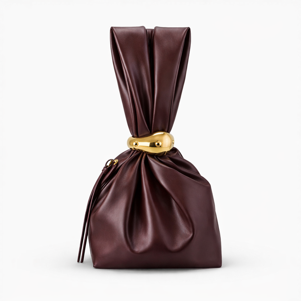 Nori – Vegan Leather Ruched Clutch Bag with Gold Ring Handle