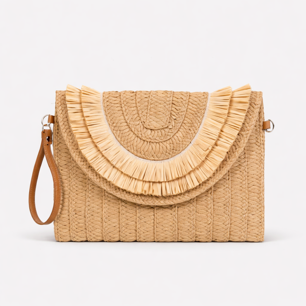 Solana – Raffia Fringe Flap Straw Handbag for Women