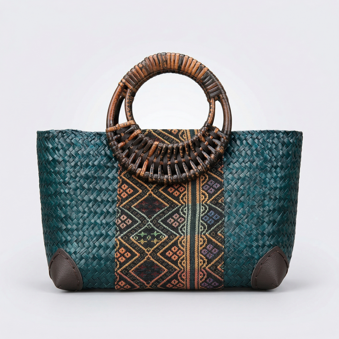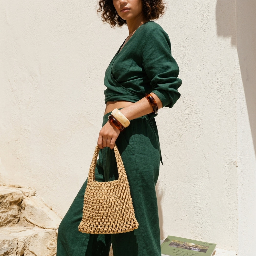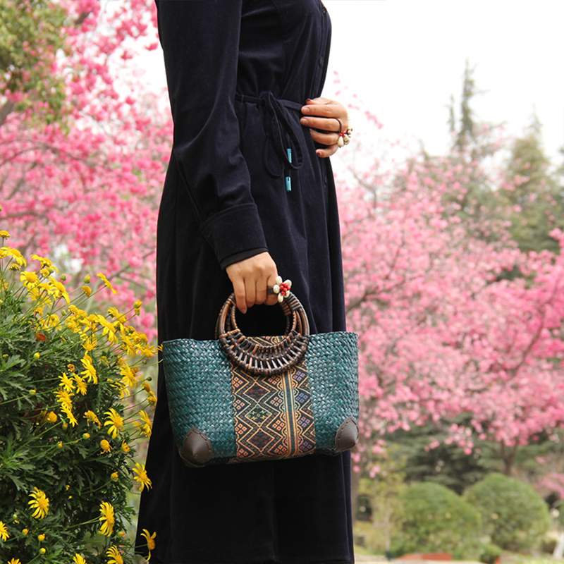 Solana – Woven Straw Top Handle Bag, Boho Clutch