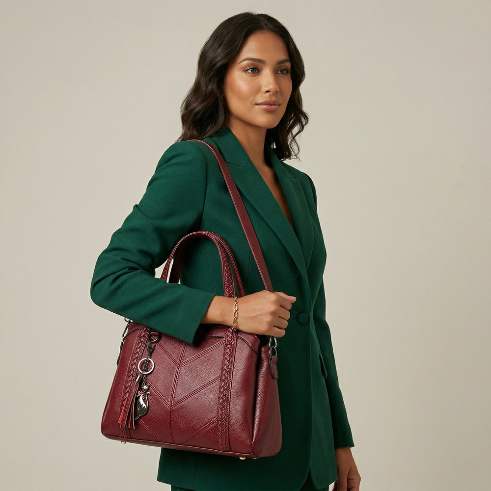 Solène – Vegan Cowhide Satchel Bag, Braided Strap Bag