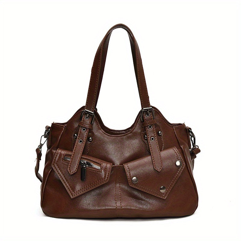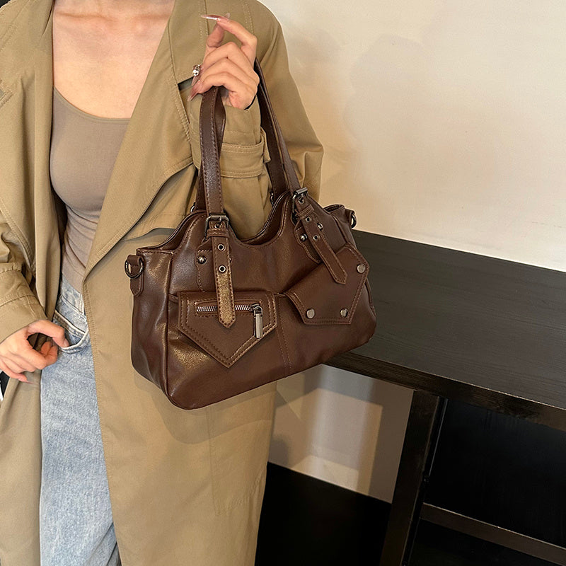 Kova – Vegan Cowhide Hobo Bag, Moto-Style Shoulder Bag