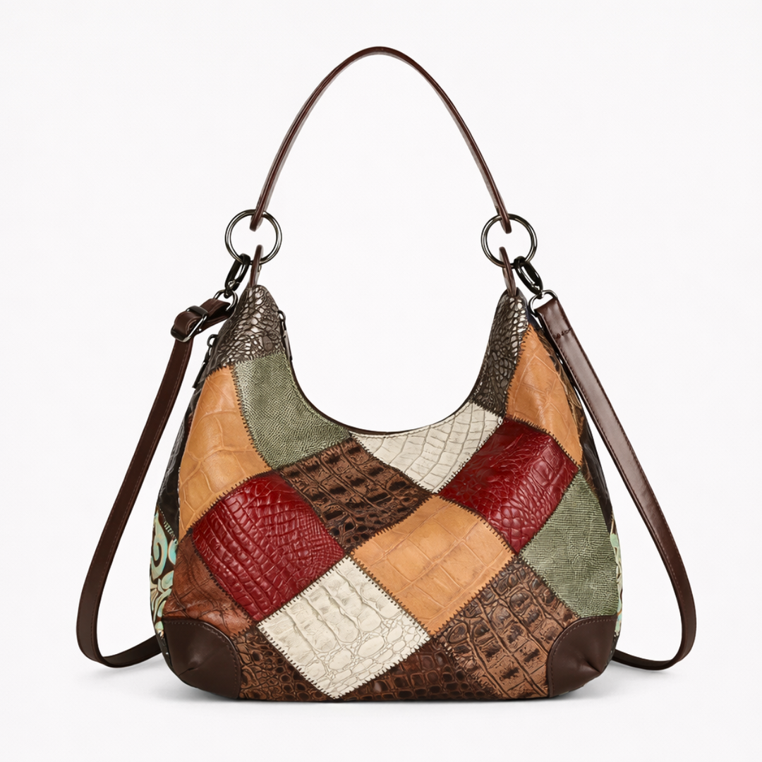 Mosaic – Cowhide Patchwork Hobo Bag, Slouchy Shoulder Bag
